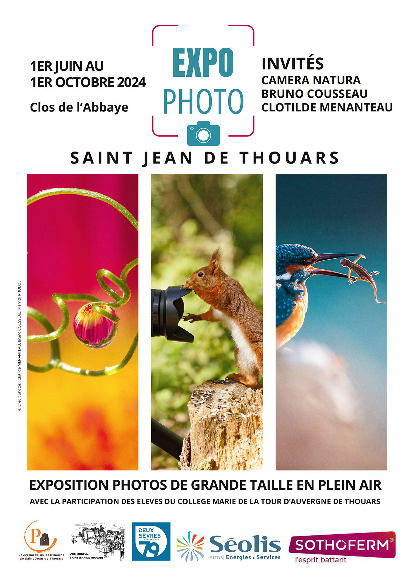 L’association Camera Natura participe à cette deuxième édition des expositions photographiques de Saint-Jean-de-Thouars, consacrée cette année au thème de la nature. La manifestation, organisée par l’association Sauvegarde du patrimoine de Saint-Jean-de-Thouars, présente, dans le magnifique cadre du parc de l’abbaye, des expositions de grande taille en plein air.