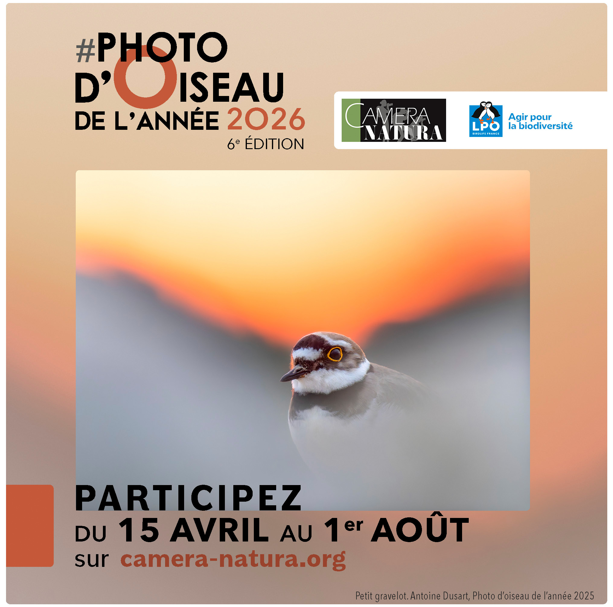 Encore quelques jours à attendre ! : nous vous donnons rendez-vous le 15 avril 2026 pour le lancement de la sixième édition de la Photo d'oiseau de l'année.