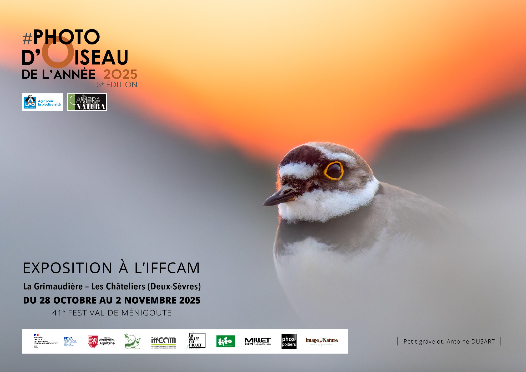 Cette exposition en grand format rassemble les 10 photos sélectionnées lors du concours national, co-organisé par la Ligue pour la protection des Oiseaux et l'association Camera Natura.