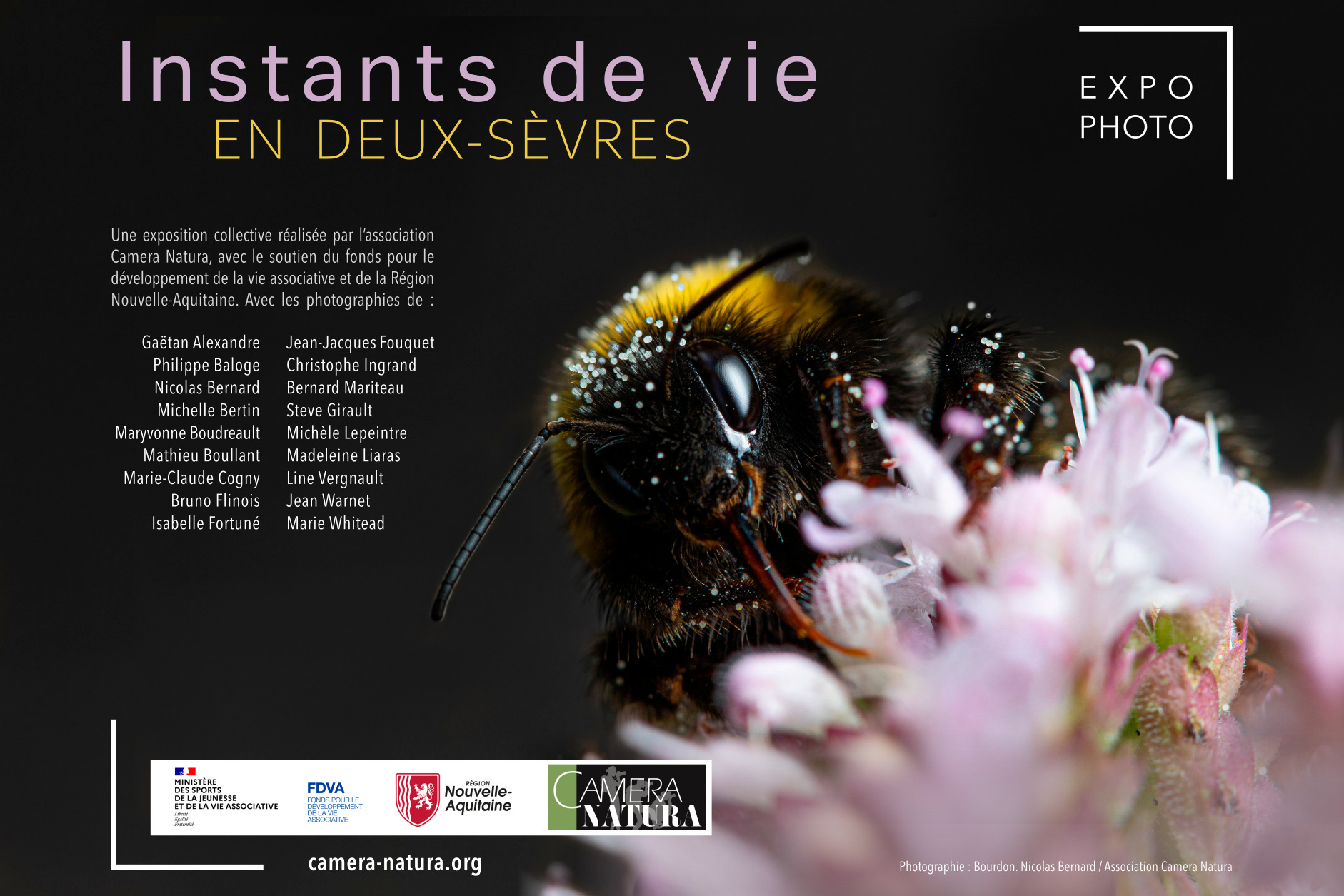 L'association Camera Natura présente quelques instants de vie captés en Deux-Sèvres : une exposition rétrospective de trois explorations photographiques de la biodiversité locale, menées entre 2020 et 2023 en partenariat avec des collectivités du territoire.